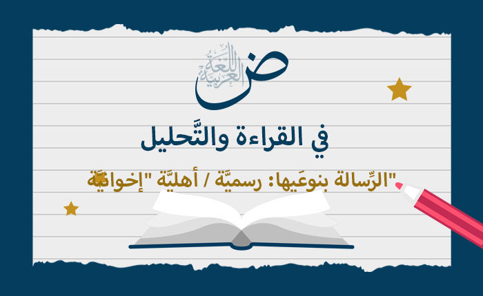 يهدف درس محور الرسالة (رسمية، أهلية/إخوانية) إلى تعريف طلاب الصف السادس الإبتدائي بمفهوم الرسالة وأنواعها، وتمكينهم من مهارات قراءة وكتابة الرسائل بشكل فعال.