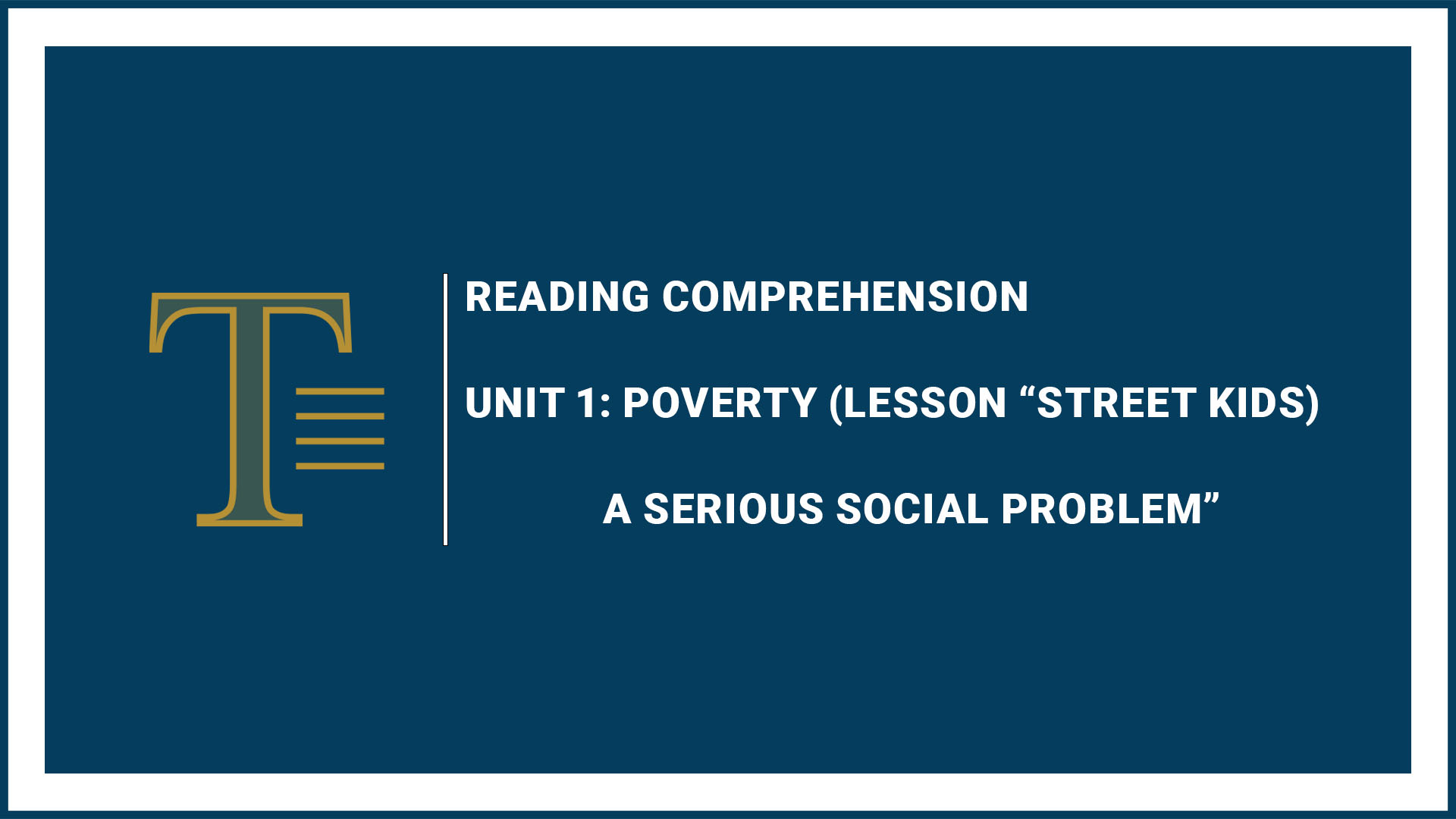 Unit 1: Poverty “Street Kids: A Serious Social Problem” Part 1